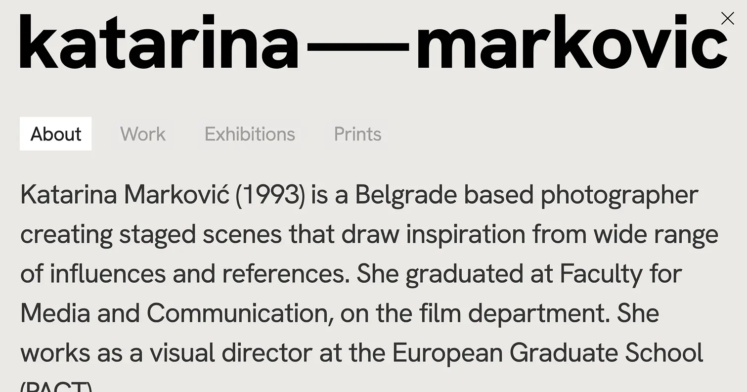 Katarina is a Belgrade-based photographer. We worked together to liven up her portfolio website, and make it into a more cinematic experience.