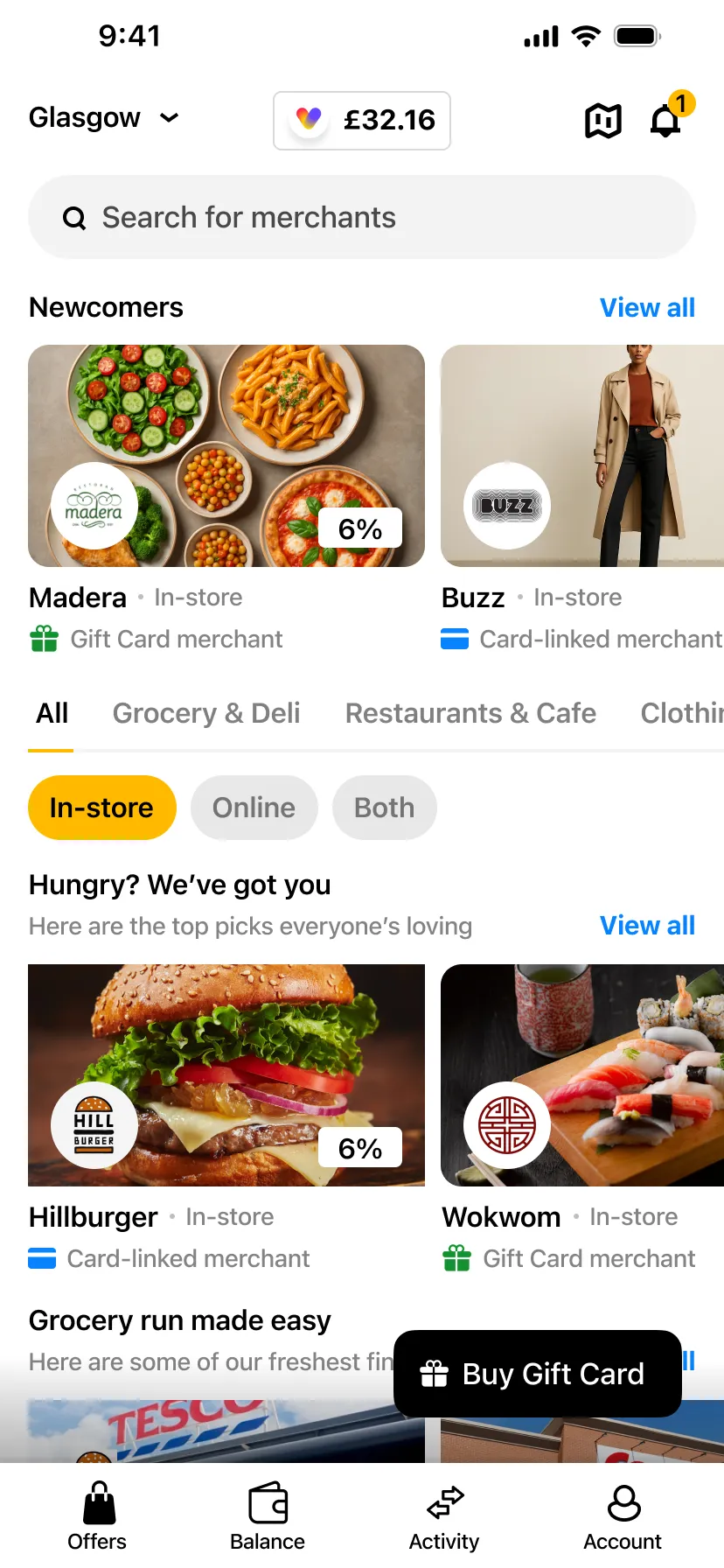 For the Swipii app, I designed the complete user experience from onboarding to daily usage. This included mapping out user flows, designing core screens - wallet, merchants, gift card redemption, and account management.