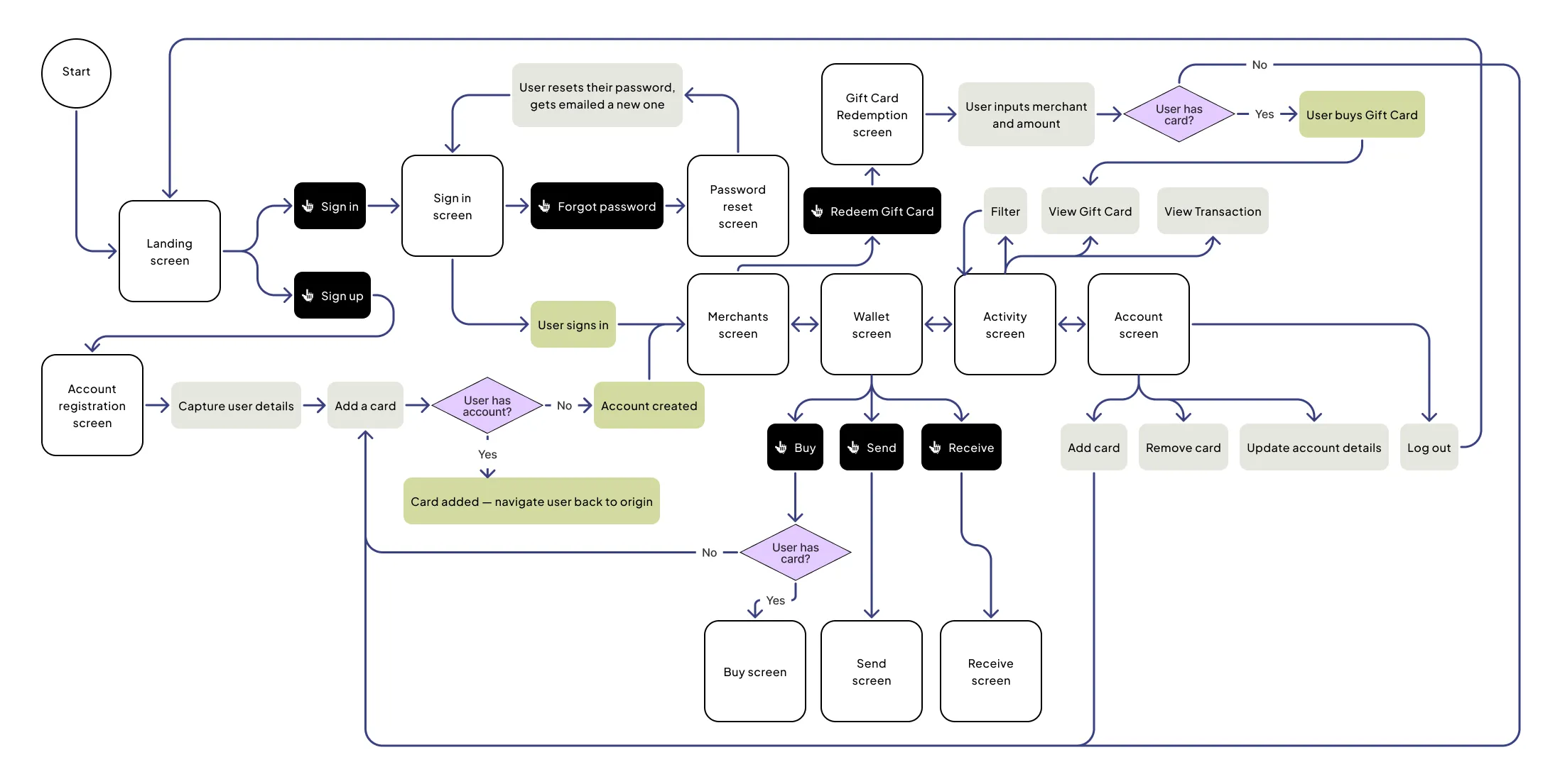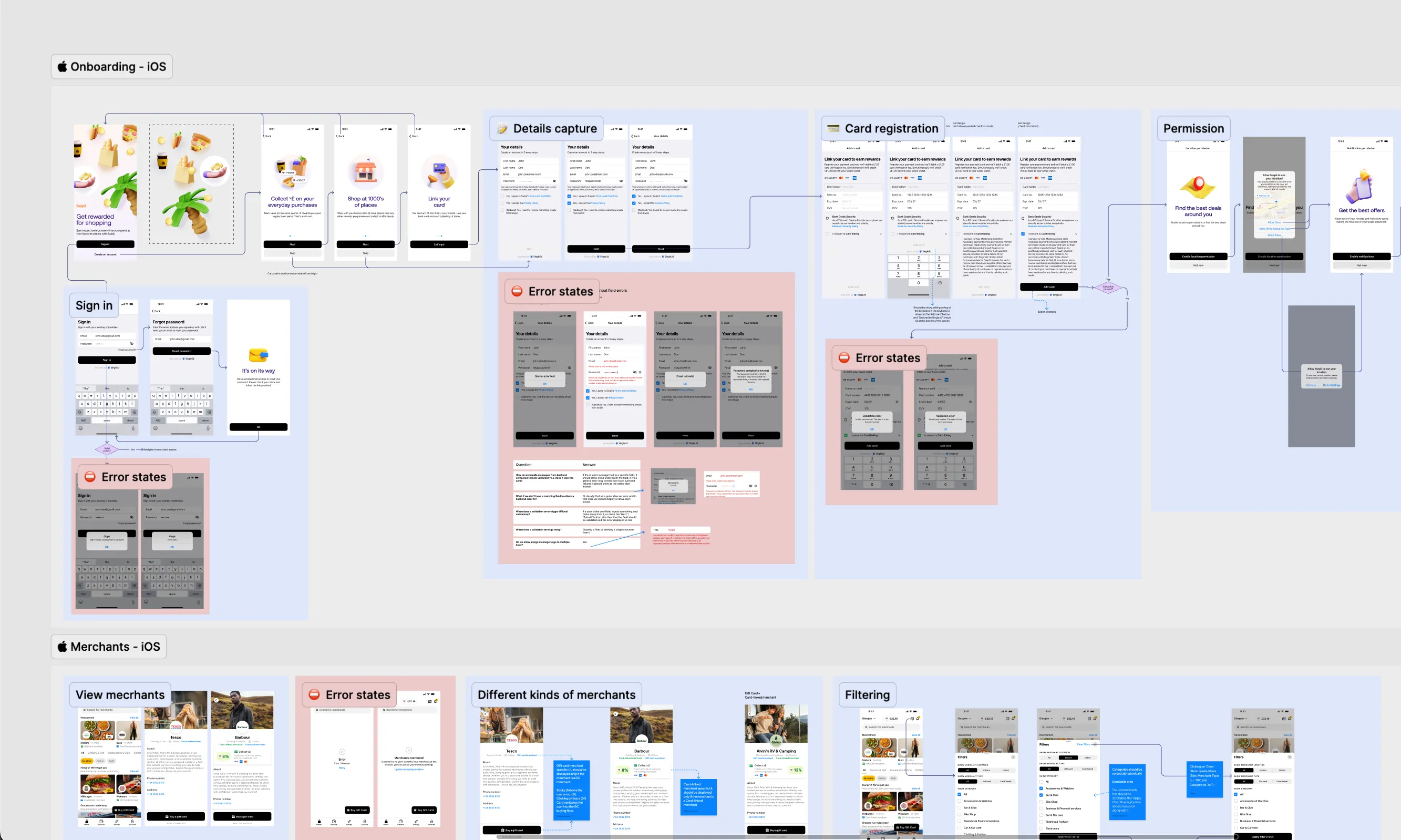 For the Swipii app, I designed the complete user experience from onboarding to daily usage. This included mapping out user flows, designing core screens - wallet, merchants, gift card redemption, and account management.